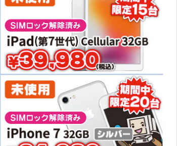 【7月27日(月) オープン】じゃんぱら新宿東口店 iPad Cellular 32GB 39,980円 iPhone7 32GB 24,980円 7月27日(月) オープンに「じゃんぱら新宿東口店」がオープンするようで…
