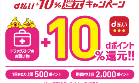 d払い10%還元キャンペーン!対象店舗はドラッグストアで11月15日まで 11月1日より、d払い10%還元キャンペーンが開催されます。 対象店舗はドラッグストア限定となってしましたが、うまく利用したいところです。 重要ポ…