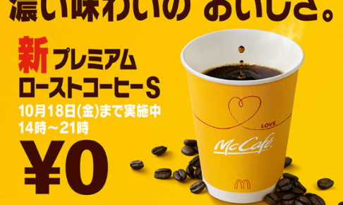 【10月18日(金)まで】マクドナルド 「新プレミアムローストコーヒーS」無料配布中 マクドナルドで「新プレミアムローストコーヒーS」が無料で貰えます! 今回は、お昼以降なので仕事帰りに貰えますね! 14時から21時まで…