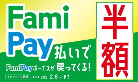 【~2月8日まで】FamiPay払いで50%キャッシュバック! 1月19日から「FamiPay払いで50%キャッシュバック」キャンペーンが開催されます。 FamiPayが使えるお店では、FamiPay払いがおすすめです。…
