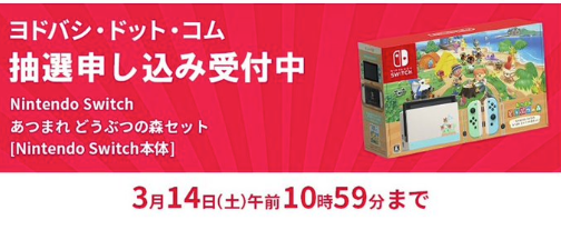 【3月14日 10:59まで】ヨドバシ・ドット・コム 「Nintendo Switch あつまれ どうぶつの森セット」の抽選申し込み