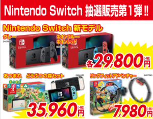 ZOA(店頭受付で「Nintendo Switch 本体 各機種」抽選販売されています。
