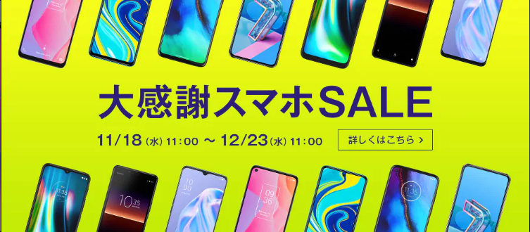 OCNモバイルONEでは、11月23日(水)まで「大感謝スマホSALE」が開催されています。