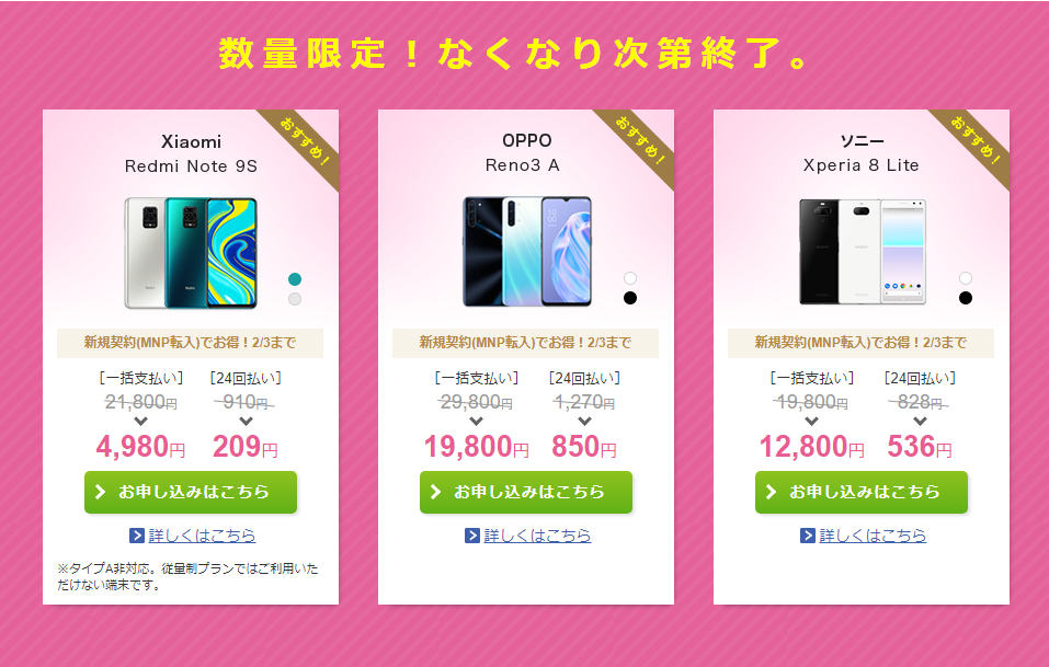 「始めるなら今!冬の乗り換えキャンペーン!」でのおすすめは、なんと言っても「Xiaomi Redmi Note 9S」です。