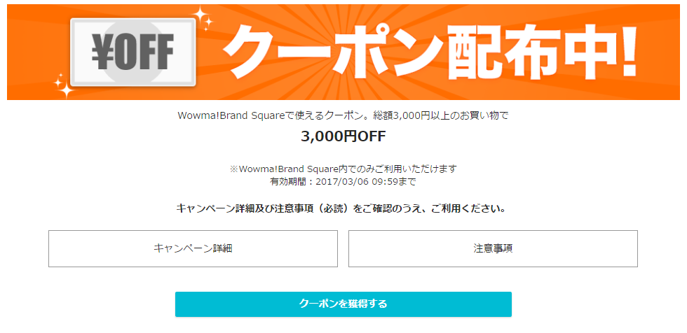 Wowma!Brand Square(ワウマ・ブランド・スクウェア)3,000円クーポン配布中!