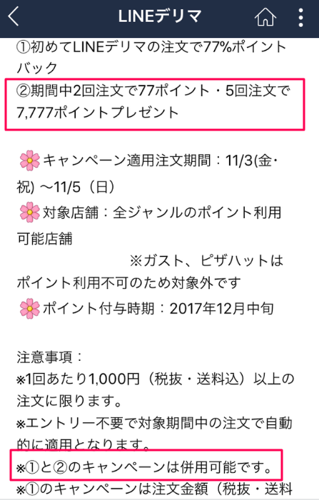 「LINEデリマポイントキャンペーン(11/3-11/5分)」のポイントにつきまして