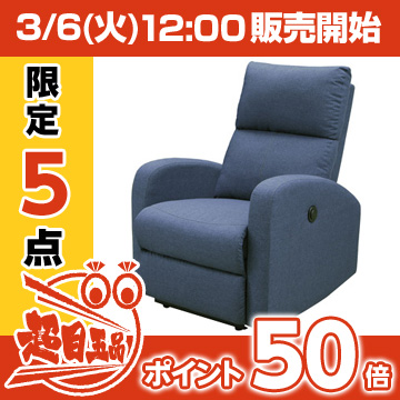 本日12:00 限定5台 「電動リクライニングソファ 1人用 (ブルー)」