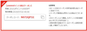 購入時にこのクーポンコードを入力する事で20,000Pが獲得可能です。